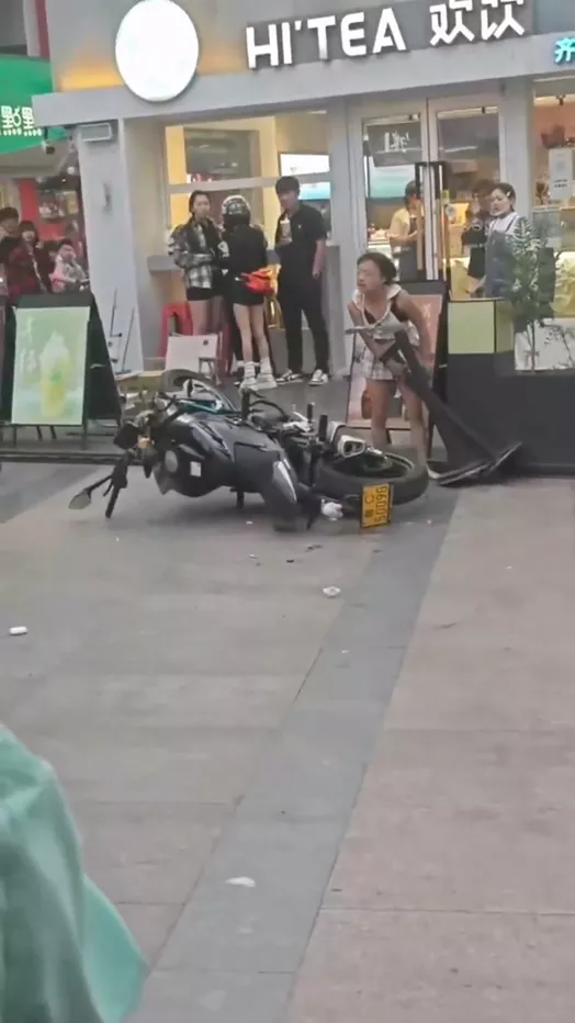 521淄博王府井缺爱的精神小妹搞出抽象事件。一名女子在王府井疯狂破坏摩托车,甚至试图纵火。她穿着暴露,言辞激烈,不断咒骂,迅速吸引了众多路人的围观。